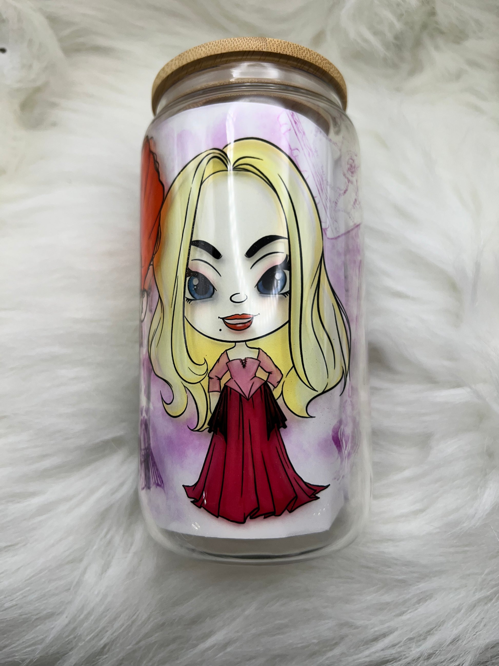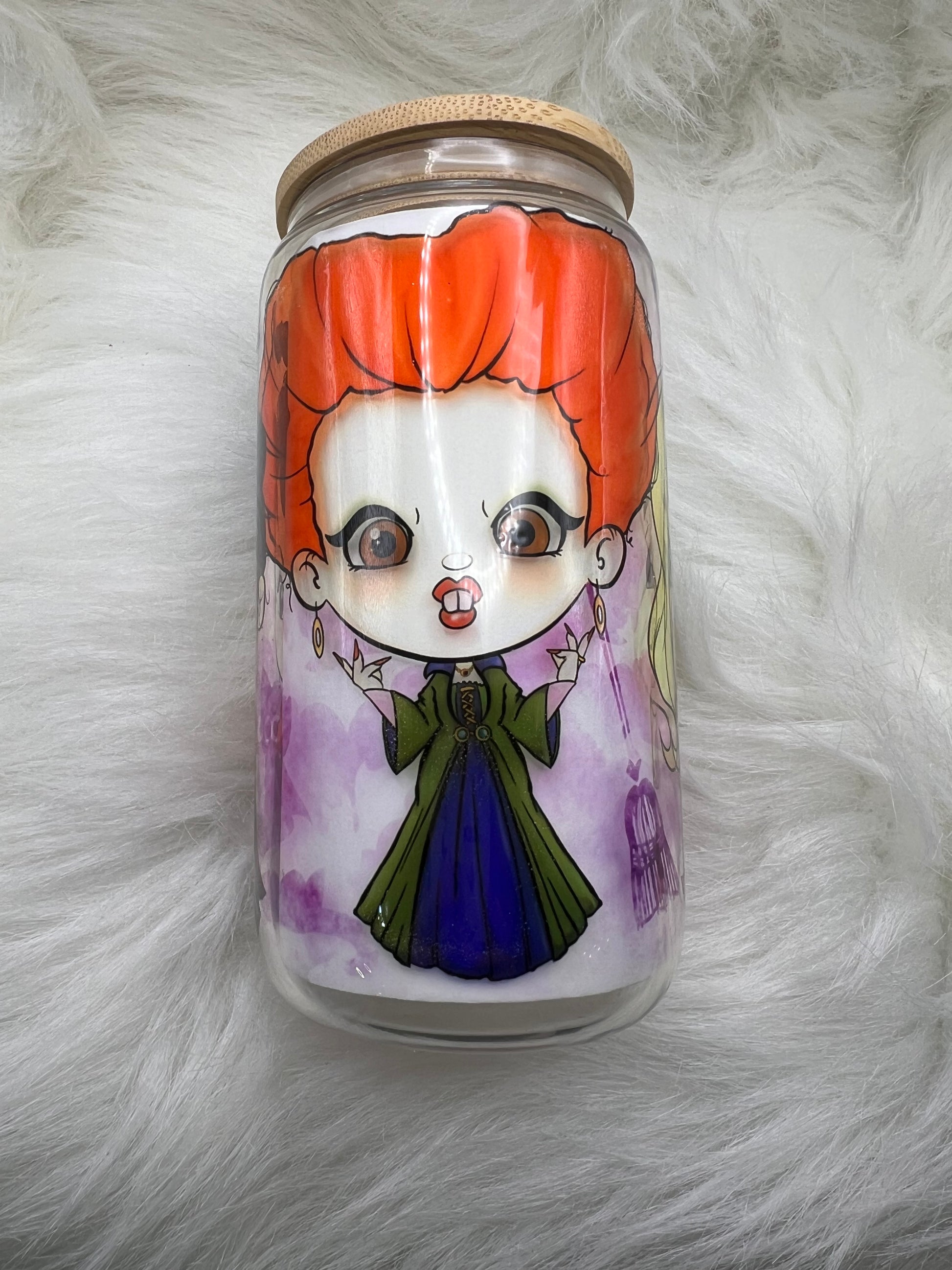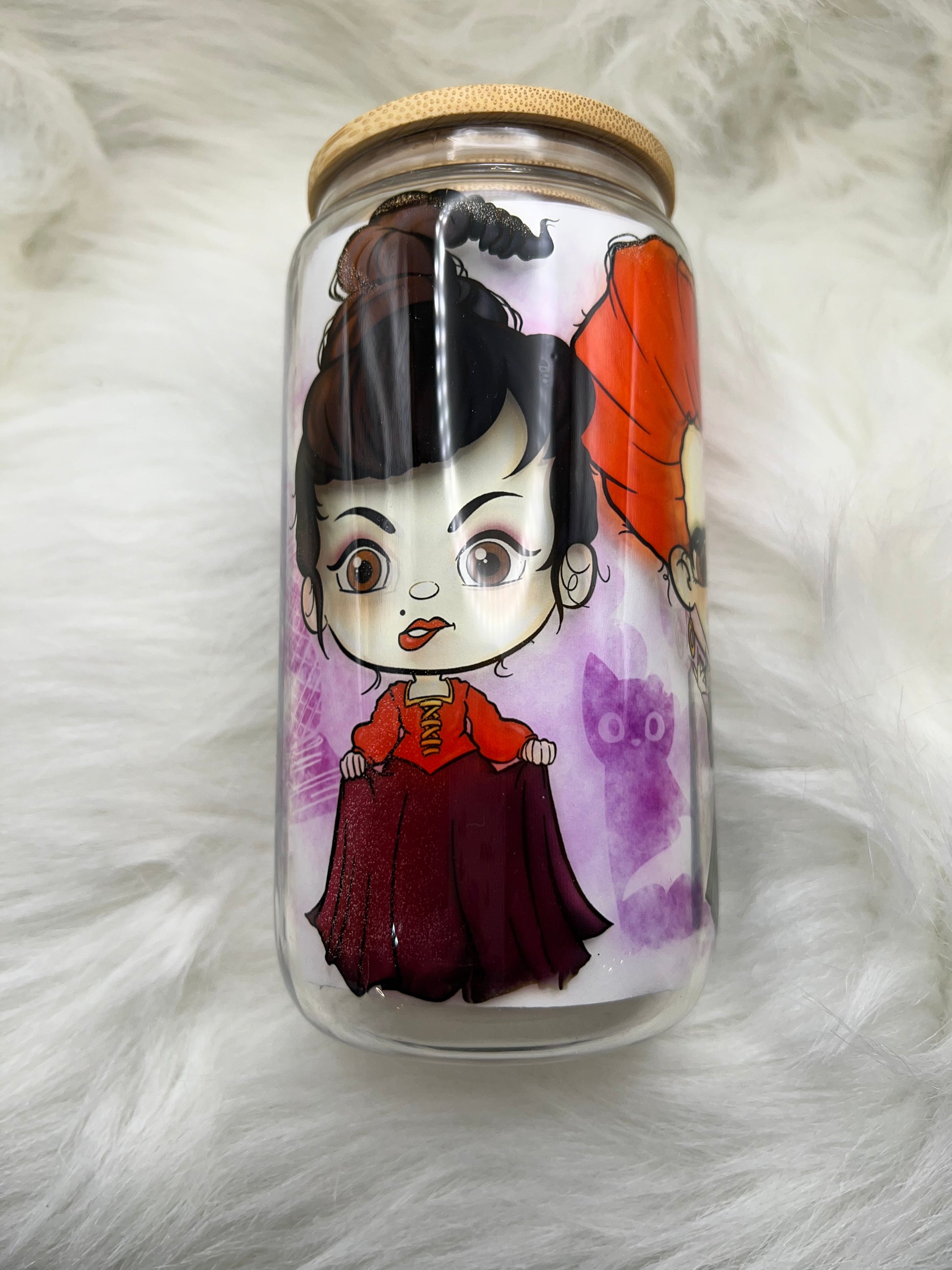 Sublimated 16 oz Glass Can with Bamboo Lid. Straw Included